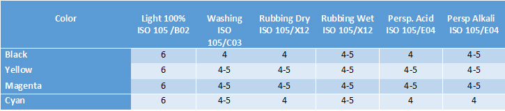 Estos resultados pueden variar en función del tejido, el pretratamiento. Pueden consultarnos en cuanto a los tratamientos mas adecuados según sus condiciones particulares.